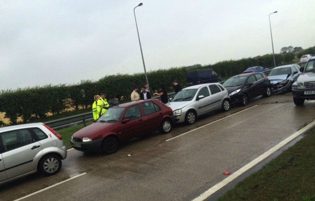 The pile up happened on the southbound carriageway approaching the roundabout at around 8.30am.