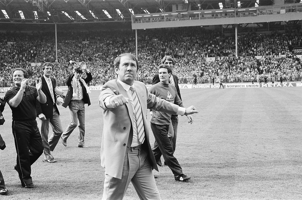 Watford 0-2 Everton 1984 FA Cup Final 19.05.84 Everton Manager Howard Kendall celebrates after leading his Everton side to the FA Cup glory