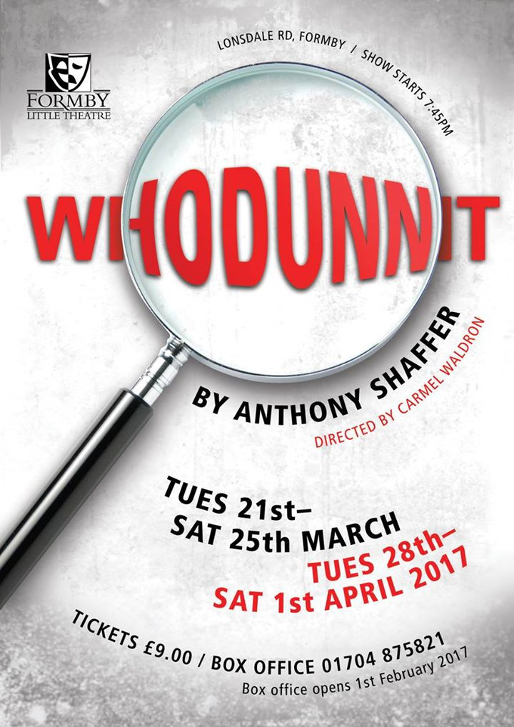 The Formby Little Theatre BOX OFFICE is NOW OPEN for its next production, a comedy thriller "Whodunnit", which starts on 21st March. Book early to make sure you can get a seat - details on the poster. Roger Sloman, FLT Publicity.